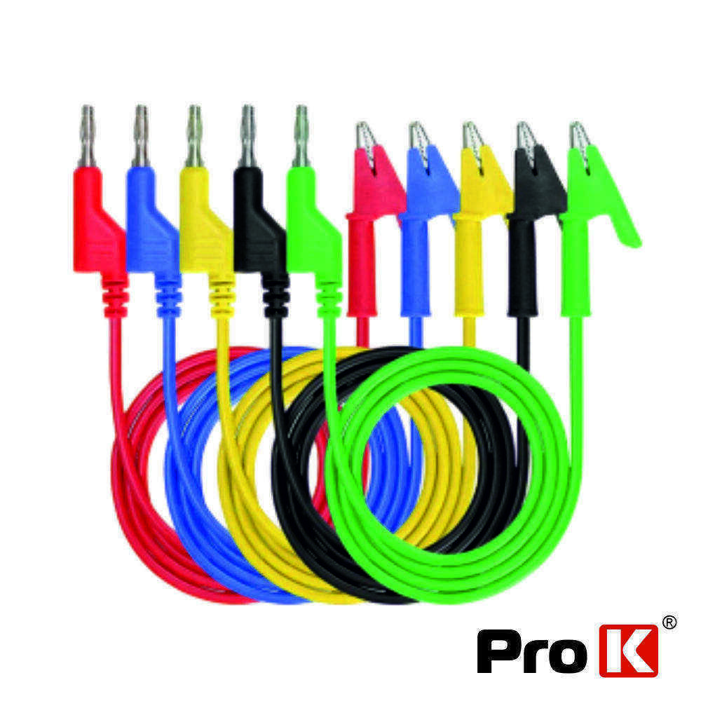 Conjunto 5 Cabos C/ Pinça Crocodilo P/ Ficha Banana PROK